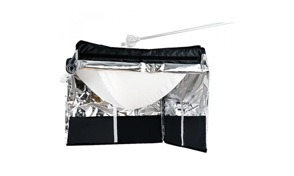 Софтбокс AMARAN Lantern for F22 — це легкий всеспрямований модифікатор м’якого світла, який перетворює гнучкий світлодіодний ліхтар amaran F22x або F22c на куполоподібний верхній світильник, ідеальний для освітлення великих просторів. Розсіювальна тканина з 2,5 ступенями пом’якшує вихід світла, мінімізуючи втрату світла, а знімна спідниця на липучках забезпечує контроль напрямку та запобігає розливанню світла. Модифікатор важить лише 2,1 фунта та поставляється з сумкою для зручного зберігання та транспортування.